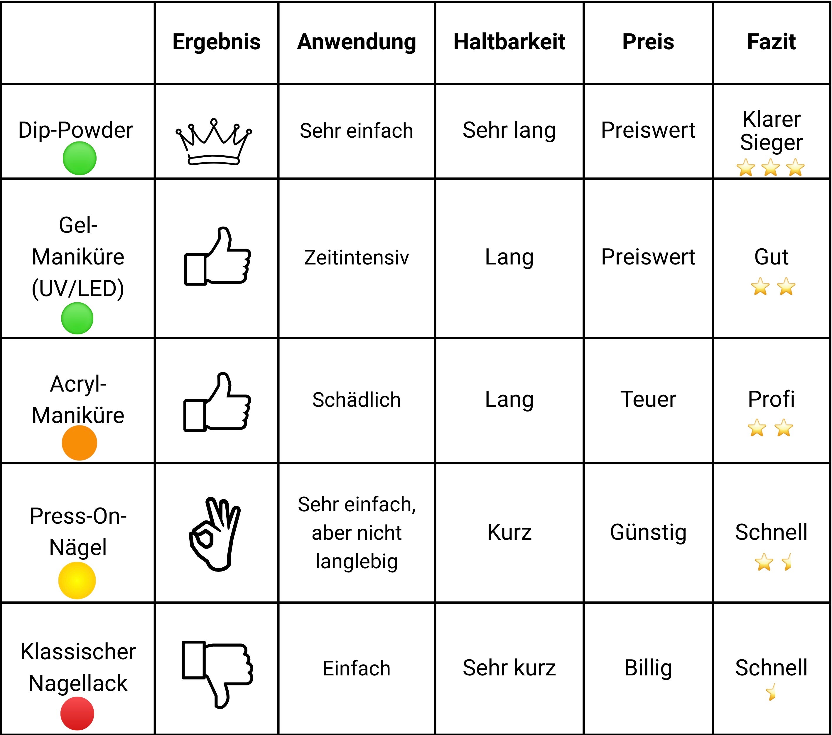 Deshalb haben wir uns die fünf beliebtesten Methoden für die Maniküre zu Hause genauer angesehen und sie nach den wichtigsten Kriterien verglichen: